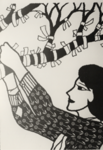 切り絵 「縁切り橋の縁結び」
