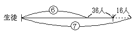 <解法2> 図のように生徒の数を直線で表し,いすの数を①とします。図より,①=36+16=52脚,