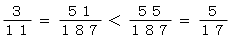 ではどちらが大きい数なのか,通分しないと分かりません。通分すると次のようになります。