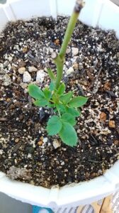 黄バラを挿し木したのですが、新芽が下から出てきました。来年が楽しみです。