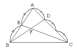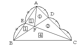 です。AE:EB=1:1より,三角形ACF=三角形BCFとなり,③=
